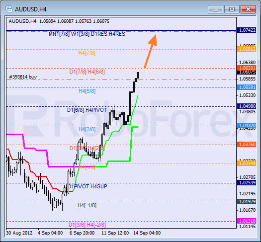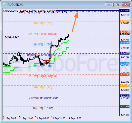 Australian Dollar continues moving upwards fast. The price is moving above the 5/8 level, thus indicating that it may continue growing up towards the 8/8 one. Today I’ve opened a short-term buy order and moved the stop into the black.