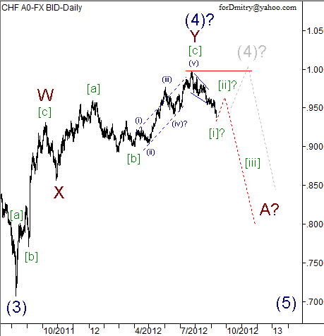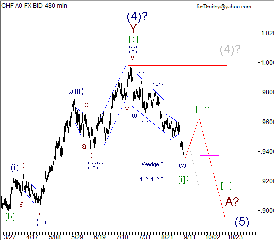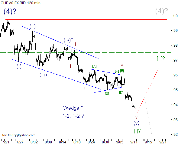 Franc continues finishing the formation of a possible descending wedge [i], Later, we can expect an ascending correction [ii].