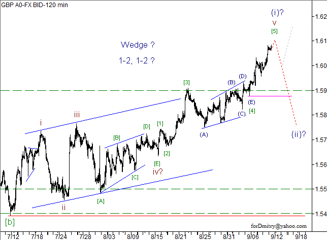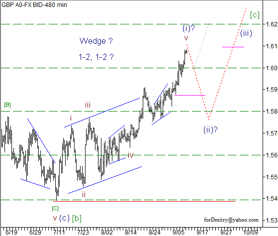 Euro continues finishing the formation of a possible ascending wedge [i]. Later, we can expect a descending correction [ii].
